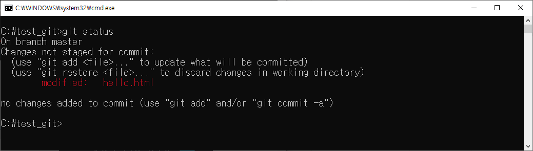 파일을 수정 후 저장하고 상태확인을 했을 때,