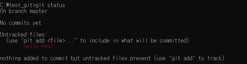 그리고 git status 명령어로 저장소 상태를 확인해본다.