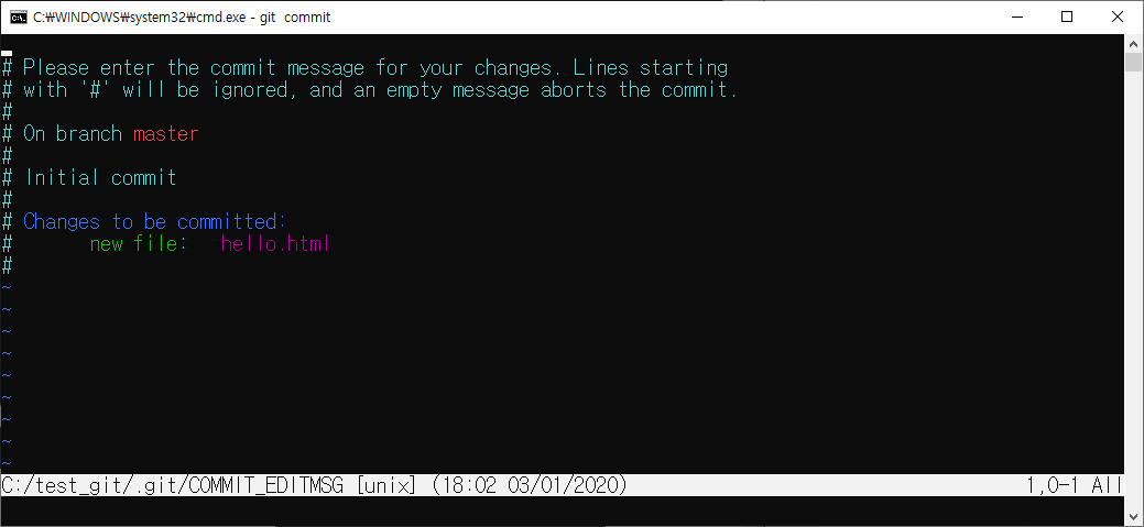 git commit을 입력하면 vim 화면이 출력된다.