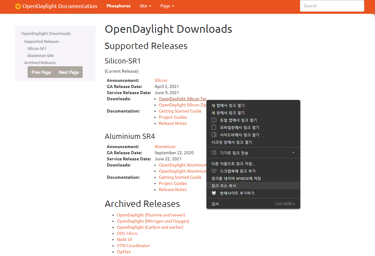설치 링크 : https://docs.opendaylight.org/en/latest/downloads.html