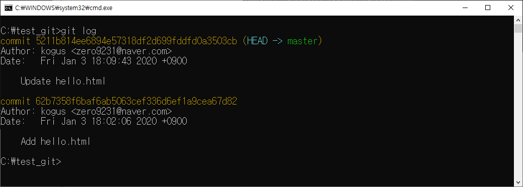 - git log로 commit한 정보 확인