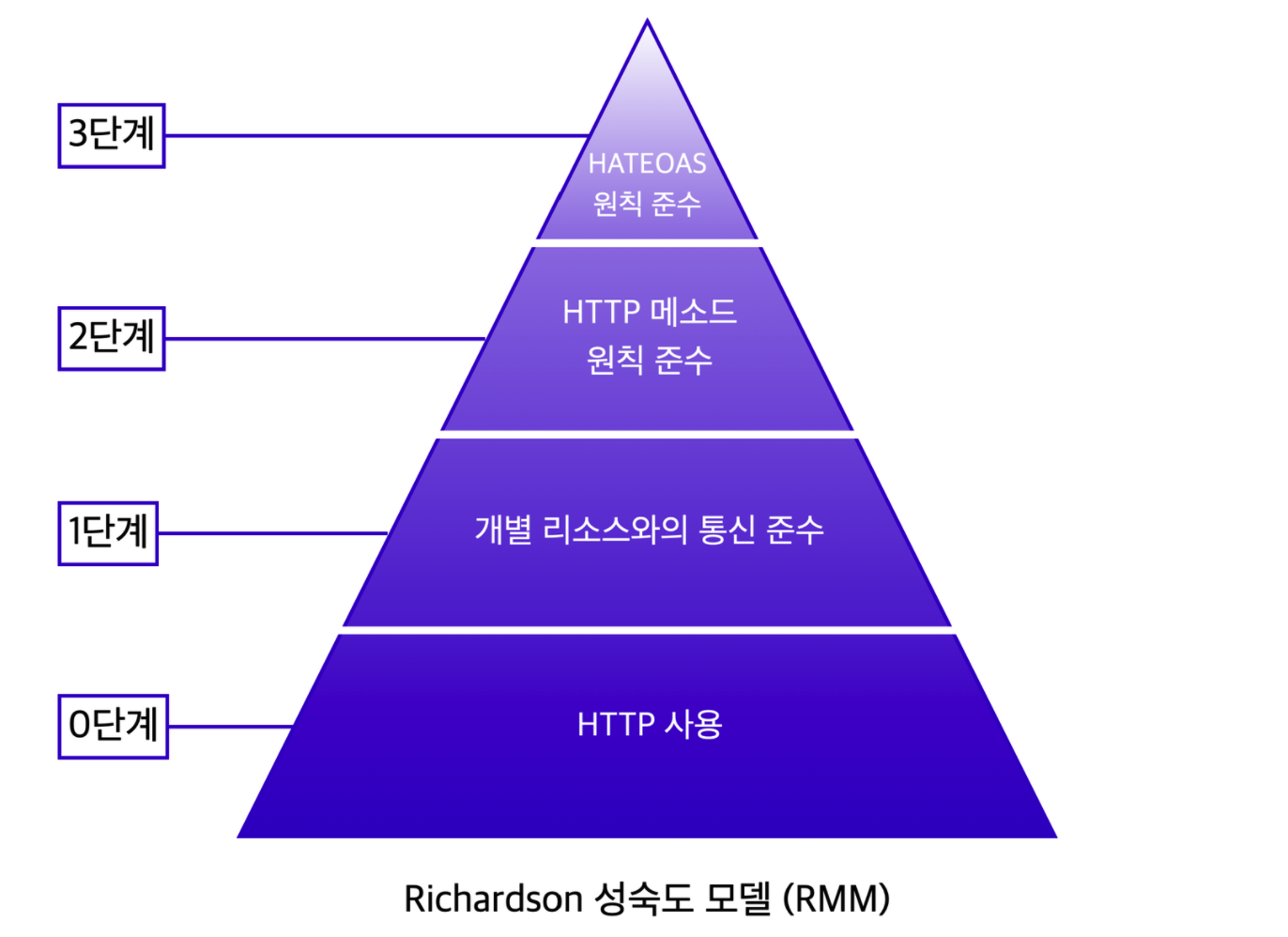 Richardson Maturity Model에 따르면 REST API를 실용적으로 적용하기위한 0단계에서 3단계로 성숙도 모델을 정의했습니다.